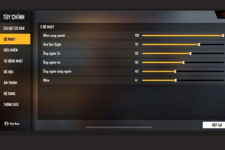 Tùy chỉnh (Độ nhạy 360 độ nên để cao) |