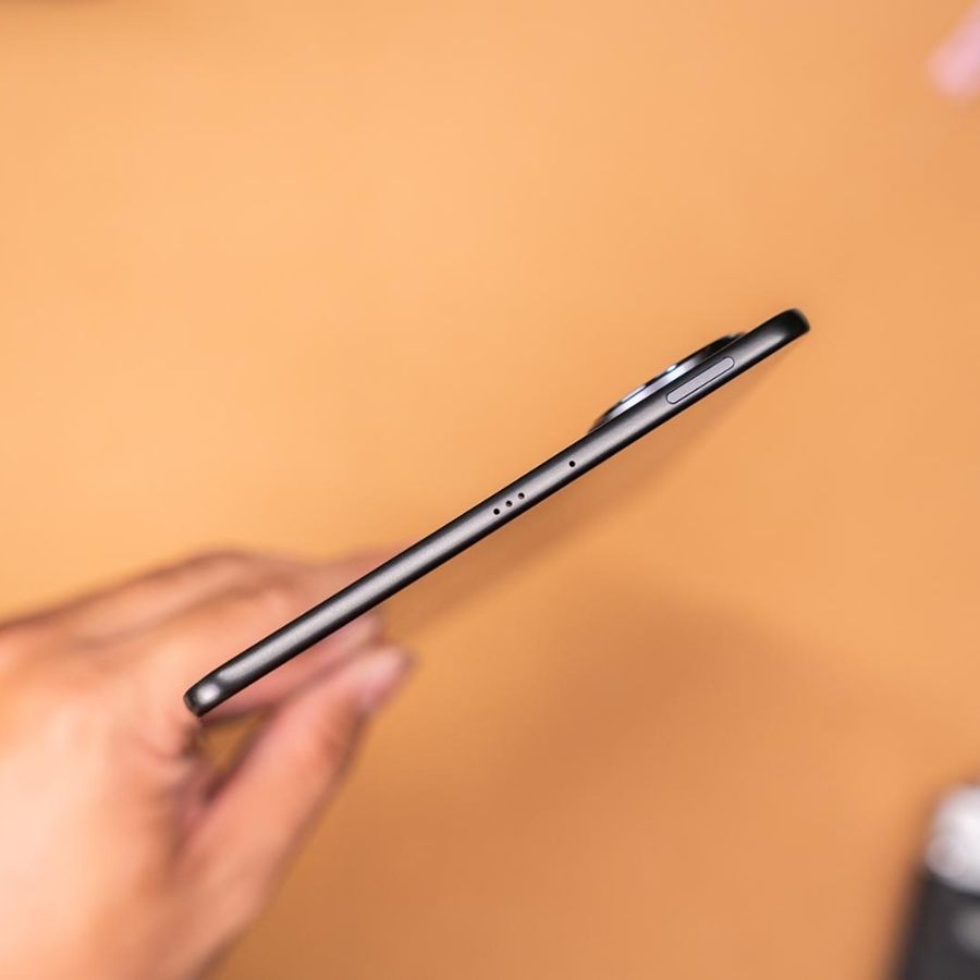 Cảm giác đầu tiên khi mình cầm Huawei MatePad Mini chính là nhẹ hơn tưởng tượng khá nhiều. Với trọng lượng khoảng 255 gram và độ mỏng chỉ 5,1 mm, thiết bị này gần như nằm giữa ranh giới của một tablet và một cuốn sổ tay mỏng.