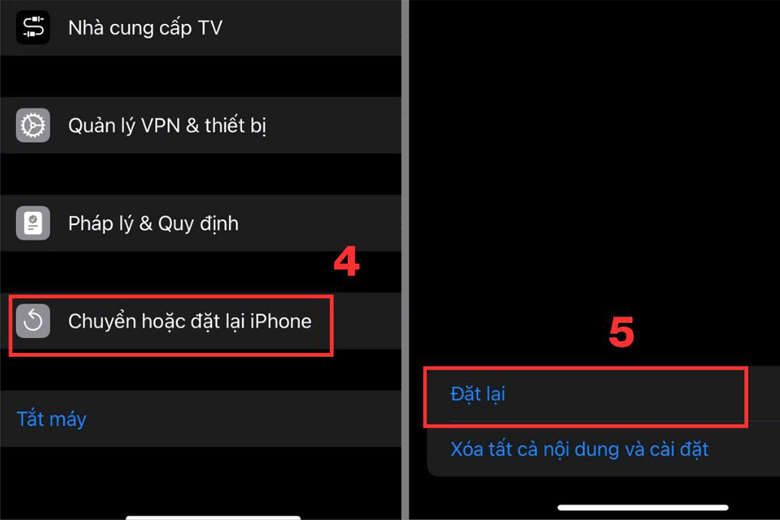 Cách làm khá đơn giản với các bước như sau: Mở phần Cài đặt trên iPhone > Truy cập vào Cài đặt chung > Chọn mục Chuyển hoặc đặt lại iPhone để truy cập các tùy chọn khôi phục và cài đặt lại thiết bị > Chọn “Đặt lại” để xóa bỏ các cấu hình lỗi và đưa iPhone trở về trạng thái mặc định lúc đầu.