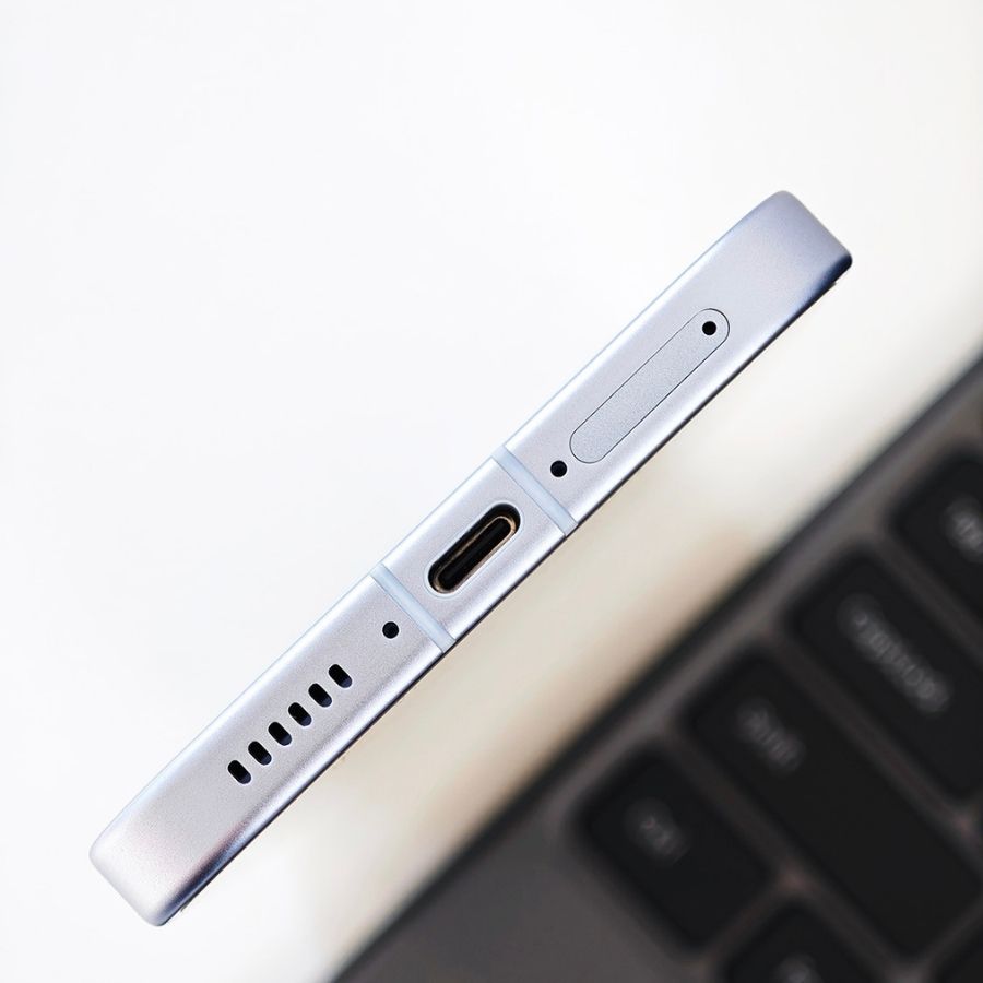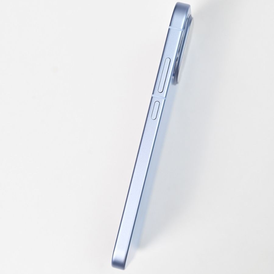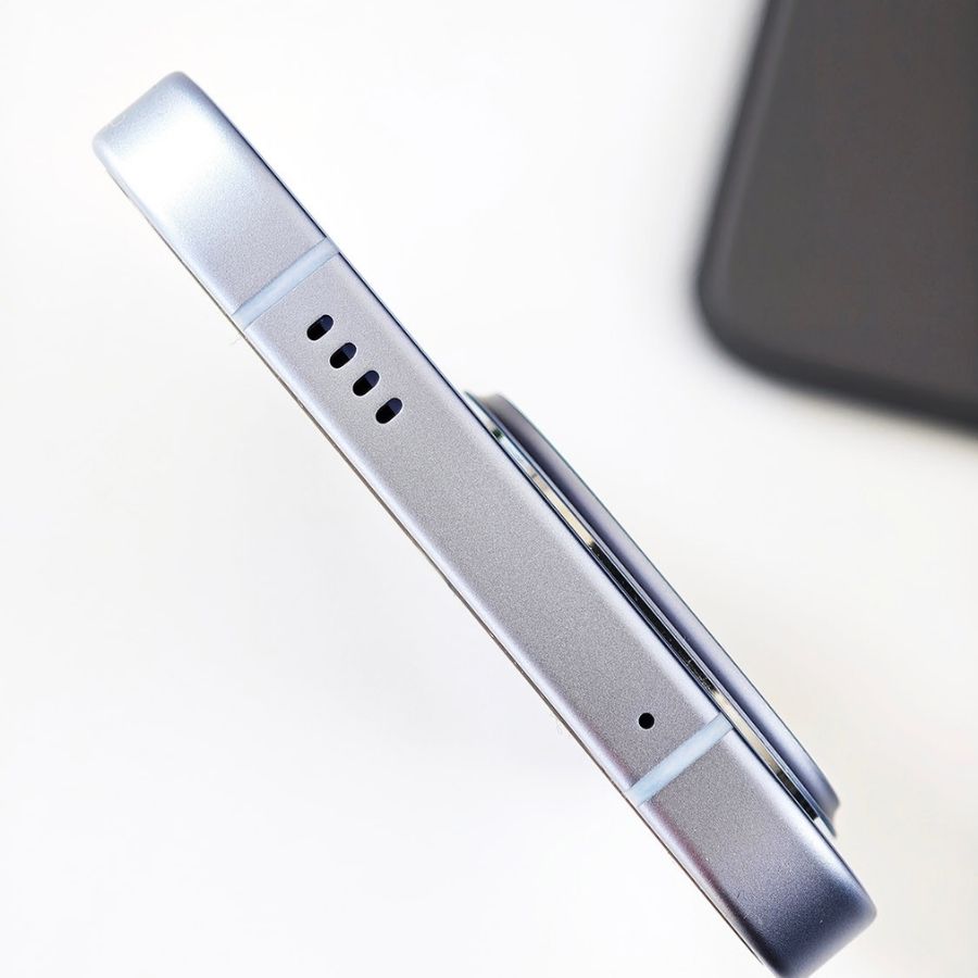 Phiên bản Floating Light mà mình trải nghiệm có mặt lưng kính xanh lam, hiệu ứng ánh sáng thay đổi nhẹ khi nghiêng máy. Đây không phải là kiểu bóng bẩy để khoe mẽ, mà là dạng ánh kim dịu, nhìn kỹ mới thấy đẹp. Bề mặt kính được xử lý khá mịn, ít bám vân tay hơn mình nghĩ, dùng trần vẫn ổn.