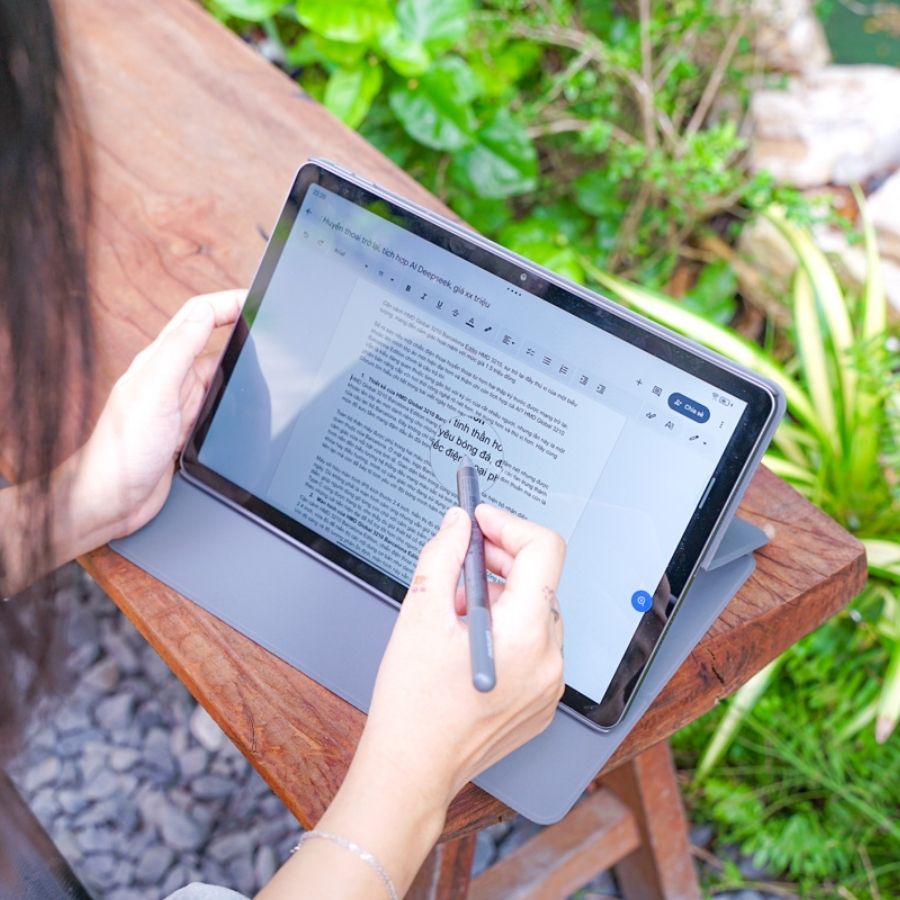 Điểm mình ấn tượng nhất khi bật Lenovo Idea Tab lên lần đầu là màn hình. Với kích thước 11 inch kết hợp độ phân giải 2.5K (1600 x 2560 pixel) cho độ nét rất tốt. Đọc tài liệu, PDF, slide bài giảng hoặc văn bản dài đều khá thoải mái, chữ rõ, không bị rỗ hoặc mỏi mắt.