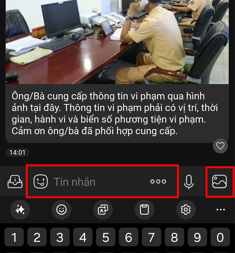 Bạn sao chép số điện thoại được cung cấp, sau đó mở Zalo và dán vào thanh tìm kiếm để tìm tài khoản > Gửi các thông tin, hình ảnh hoặc video liên quan hành vi vi phạm đến cơ quan chức năng. Công an sẽ xác minh và chuyển thông tin của bạn đến đơn vị công an địa phương để có thể xử lý theo quy định ban hành.