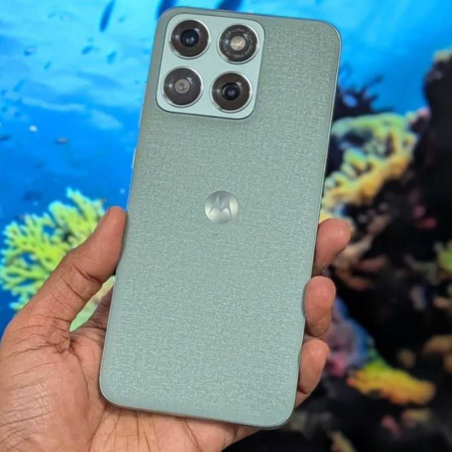 Khi nhìn trực tiếp, cảm giác của máy gần như không có cạnh sắc. Phần kính phía trước liền mạch với mặt lưng nên tổng thể khá mềm mại. Điều này giúp Edge 70 Fusion cầm trên tay dễ chịu hơn nhiều so với các máy có khung vuông. Motorola sử dụng các chất liệu được lấy cảm hứng từ nylon và vải linen. Khi sờ vào, bề mặt có cảm giác hơi mềm và bám tay hơn so với mặt kính thông thường, đồng thời ít bị bám dấu vân tay.