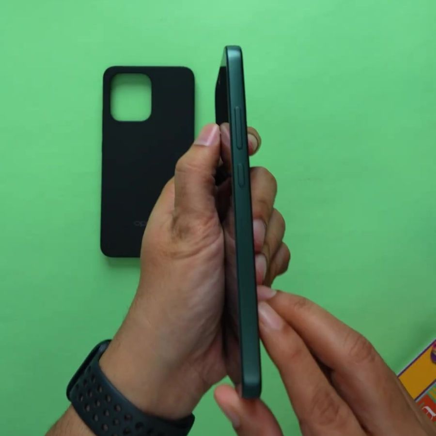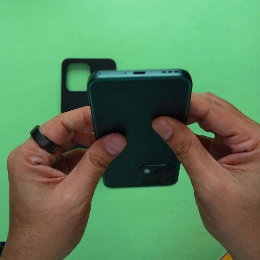 Mặt lưng polymer nguyên khối dày 1,5 mm mang đến cảm giác chắc chắn hơn mình tưởng. Khi cầm, máy không quá trơn và ít bám vân tay. Điều mình đánh giá cao là độ bền, máy có cấu trúc “bọc thép 360°”, kết hợp vật liệu acrylic và polycarbonate giúp tăng khả năng chống chịu va đập.