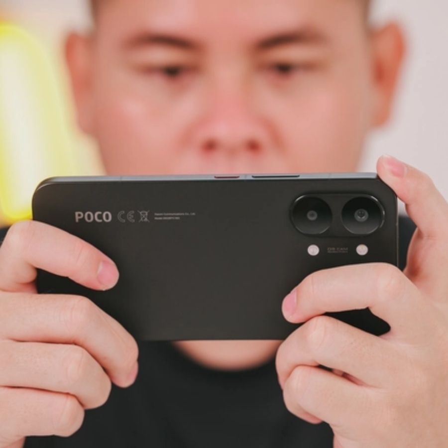 Các cạnh được bo cong nhẹ nên dù thân máy khá lớn nhưng vẫn cầm nắm khá dễ chịu. Với mình, đây là một kiểu thiết kế khá thực dụng, không quá cầu kỳ nhưng vẫn tạo ra cảm giác chắc tay khi sử dụng lâu. Poco cũng trang bị chuẩn kháng bụi, nước IP68 cho thiết bị. Điều này giúp người dùng yên tâm hơn khi sử dụng trong môi trường độ ẩm cao hoặc vô tình gặp mưa.