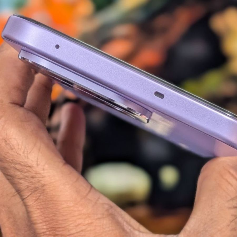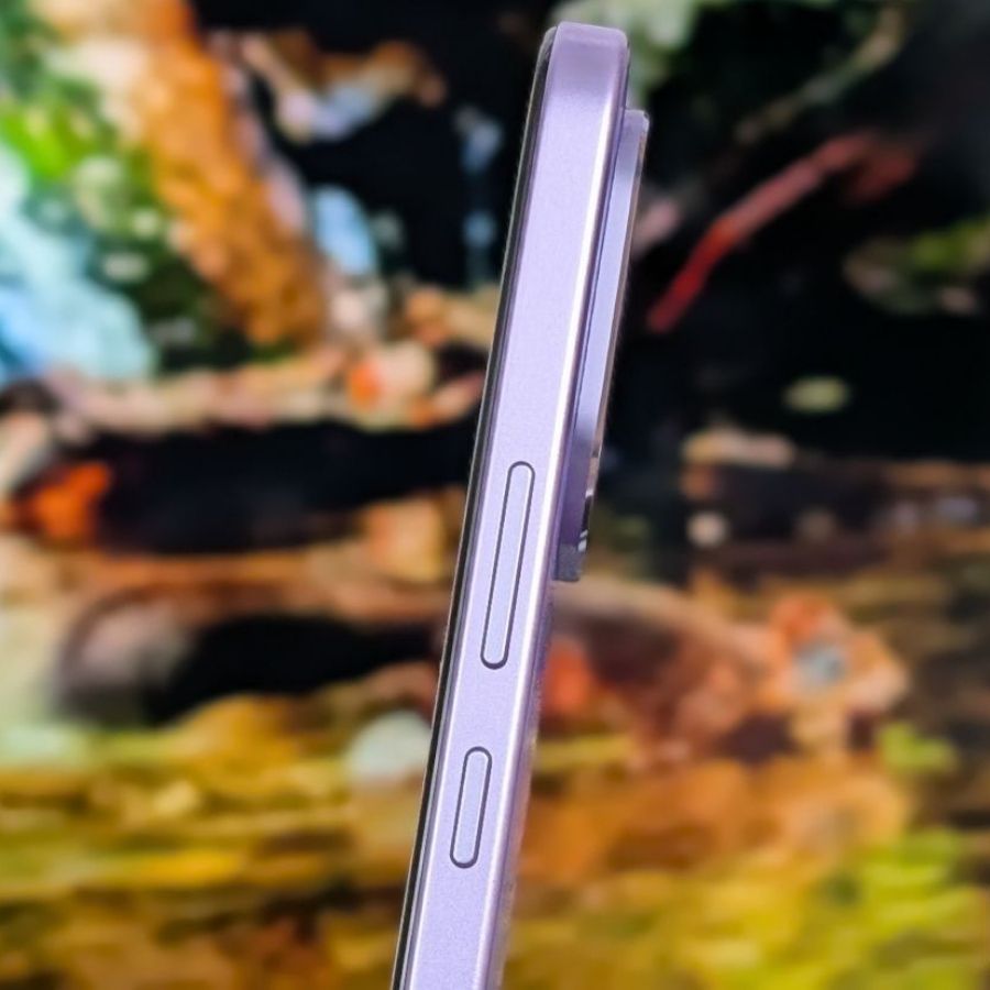 Thân máy làm bằng nhựa nhưng là loại nhựa nhám, cứng cáp, không bị bám vân tay và cầm chắc chắn. Realme còn thêm viền kim loại quanh cụm camera, chi tiết nhỏ nhưng giúp mặt lưng bớt đơn điệu. Tại Việt Nam, Realme 16 Pro chỉ có hai màu là Xám Sỏi Đá và Tím Phong Lan đều theo hướng nhã nhặn, không bị quá phô trương.