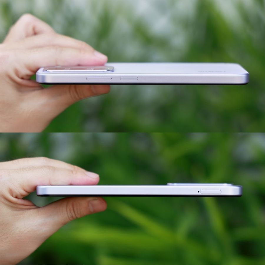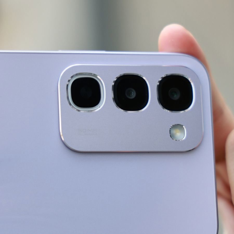 Cụm camera được làm khá nổi nhưng không bị quá lố. Thiết kế module vuông bo góc nhìn khá đơn giản, nhưng vẫn hiện đại. Tổng thể máy không quá mỏng, nhưng với viên pin 8000 mAh, mình thấy độ dày này hoàn toàn chấp nhận được.