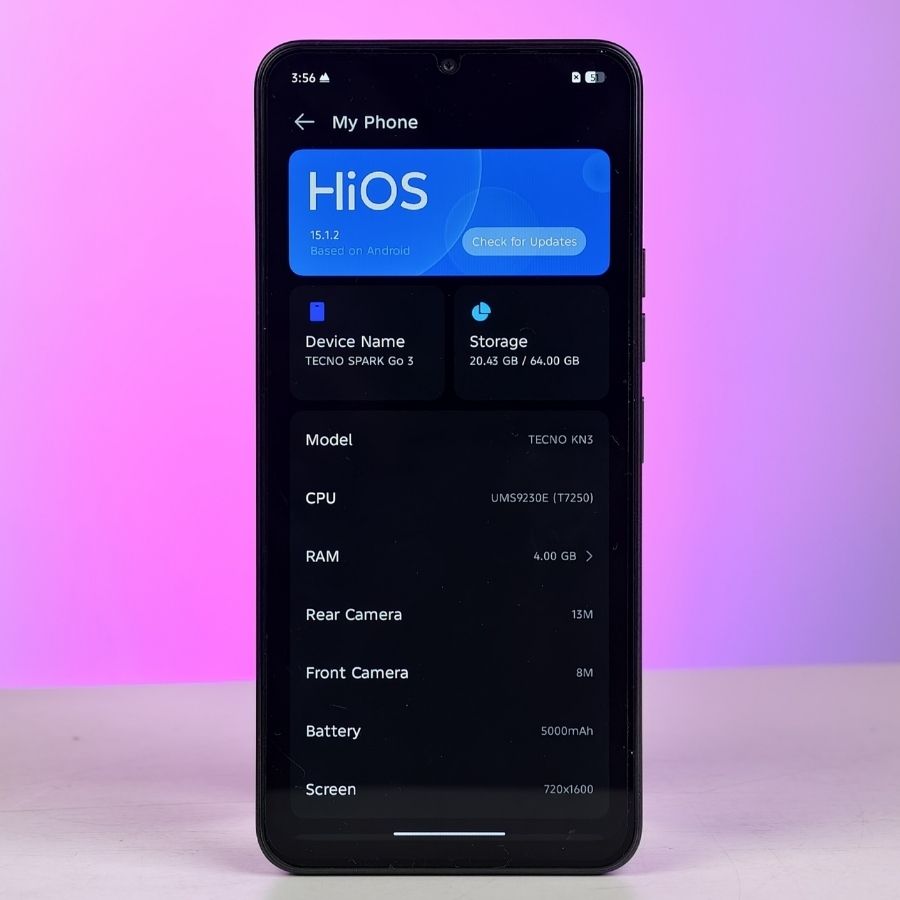Khi lướt Facebook, TikTok hoặc đọc báo, cảm giác trơn tru thấy rõ so với màn hình 60Hz hoặc 90Hz. Nếu không quá khắt khe về độ sắc nét, mình nghĩ màn hình của Spark Go 3 vẫn đáp ứng tốt nhu cầu sử dụng hàng ngày, nhất là với người dùng phổ thông hoặc học sinh, sinh viên.