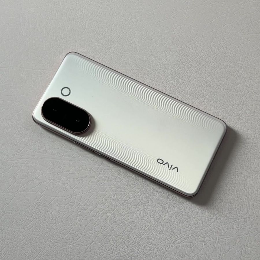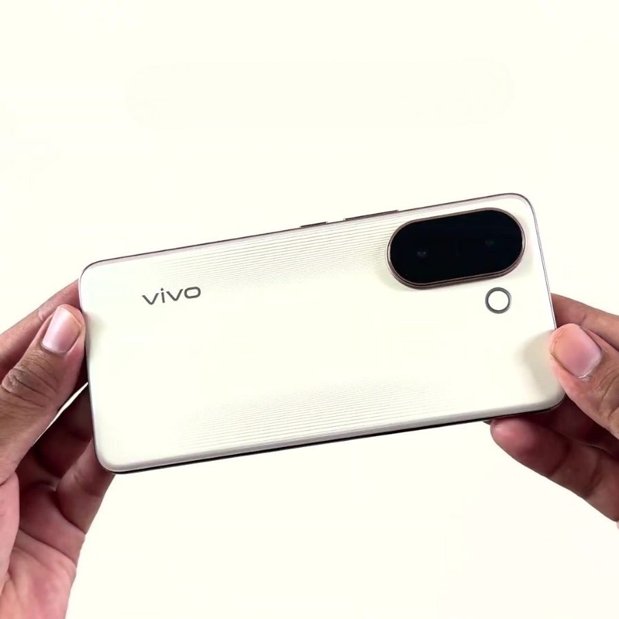 Cầm Vivo V60e trên tay, mình cảm thấy đây là một thiết bị cực kỳ chỉn chu. Mặt lưng nhựa phẳng nhẹ, khung viền bo tròn mềm mại nên cầm nắm thoải mái và chắc tay. Vivo vẫn giữ phong cách tối giản nhưng tinh tế, nổi bật với cụm camera lớn phía sau, đặt trong mô-đun hình bầu.