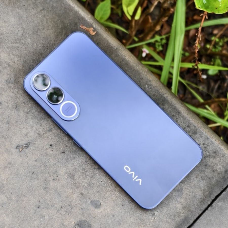 Phần khung viền được làm phẳng nhẹ, tạo ra cảm giác cứng cáp hơn khi cầm. Mặt lưng hoàn thiện dạng nhám nên ít bám vân tay hơn. Vivo mang đến 3 tùy chọn màu sắc cho V70 FE gồm Tím, Bạc và Xanh Dương. Phiên bản màu Bạc trong hình có hiệu ứng ánh sáng khá thú vị, khi nghiêng máy dưới ánh đèn sẽ thấy các vệt sáng nhẹ chạy dọc mặt lưng.