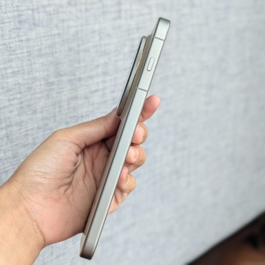 Khung viền kim loại được vát phẳng nhẹ với các góc bo tròn mạnh, tạo ra cảm giác vừa sang trọng vừa chắc tay. Mặt lưng được phủ lớp hoàn thiện mờ mịn và ít bám vân tay, cảm giác cầm rất “premium”. Điểm khác biệt nhỏ là cụm đèn flash 3 tone màu được tách riêng, đặc ở góc trái phía trên, tạo nét mới nhưng cũng giúp bố cục tổng thể cân đối.